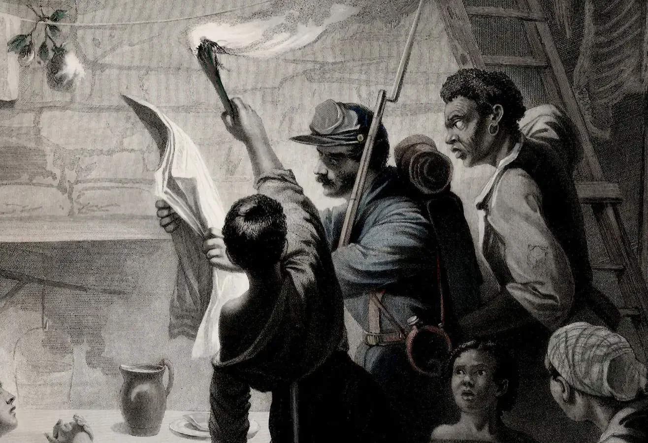 About: Henry Walker Herrick & James W. Watts, Reading the Emancipation Proclamation (1864) via the Library Company of Philadelphia.